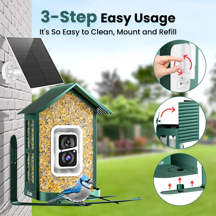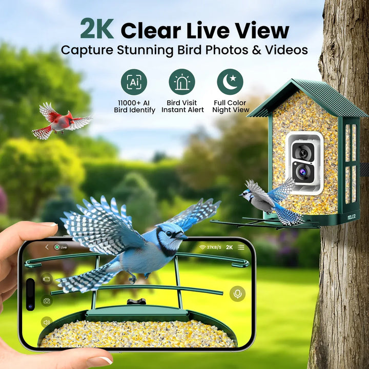 Are you passionate about getting closer to nature? Uncover the wonders of the Humbirdy Smart Bird Feeder! This innovative Smart Bird Feeder is more than just a gadget—it’s your personal gateway to observing the fascinating wildlife in your own backyard. Effortlessly capture vibrant, detailed moments in stunning 2K QHD. With crisp and clear images, both day and night, you’ll never miss a feathered guest. Get instant updates on every wildlife visit. Transform your outdoor space into a lively sanctuary and enjoy endless excitement from the comfort of home.